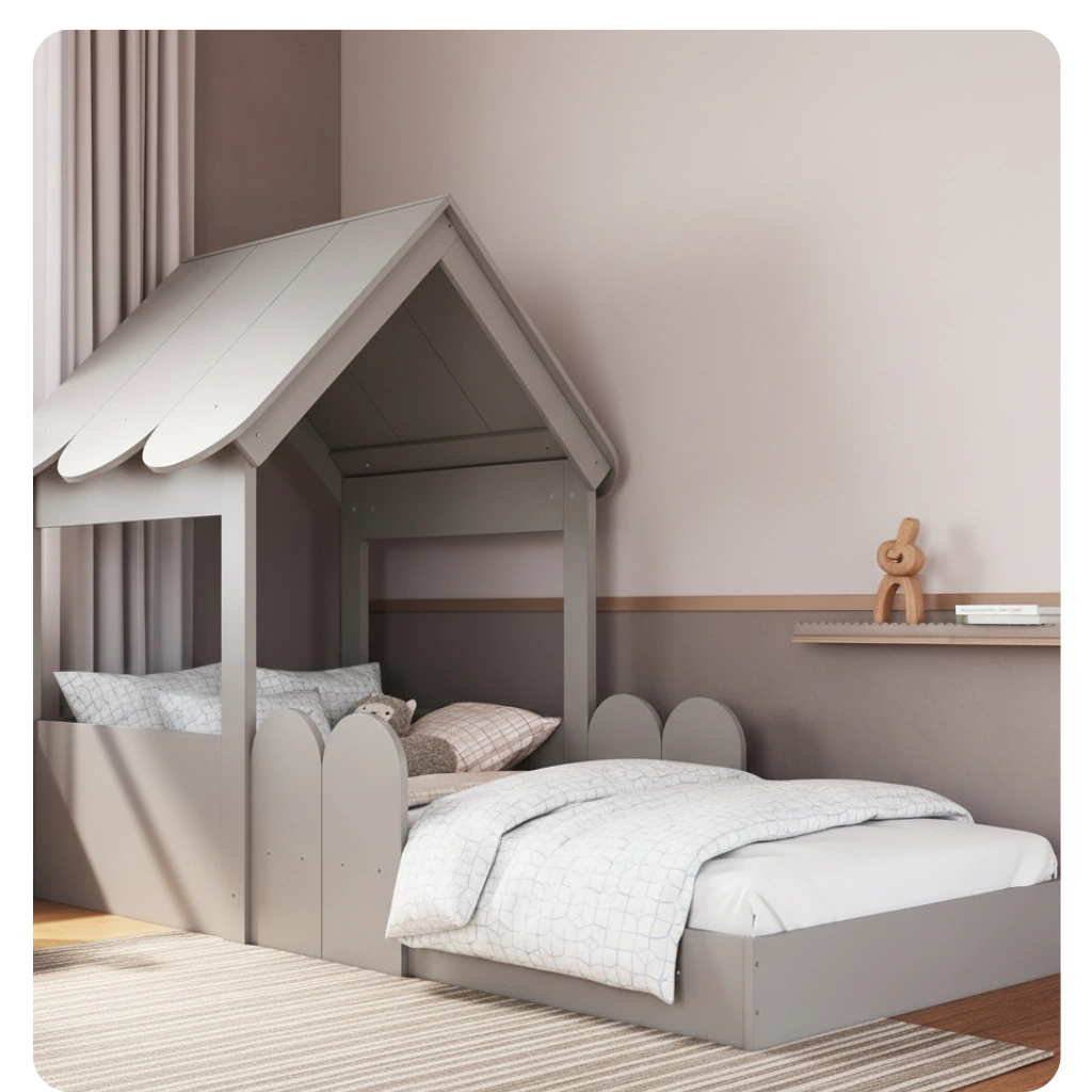 Design Lúdico: Formato de casinha, ideal para estimular a imaginação e a brincadeira.